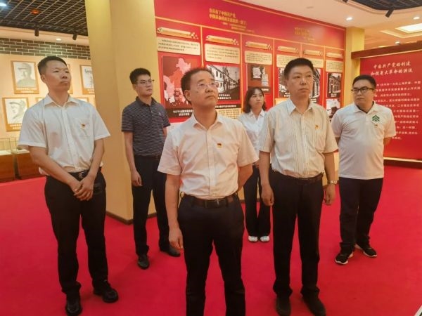 调研当日恰逢中国共产党成立102周年,为弘扬伟大建党精神,赓续红色基因,李留彬与全体党员来到中共六大历史资料馆,通过馆内文物实物、史料图片等资料,深入了解中共六大召开的历史背景和重大历史意义,共同回顾中国共产党从无到有、发展壮大的光辉历程。