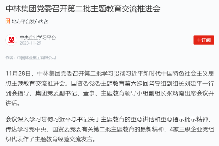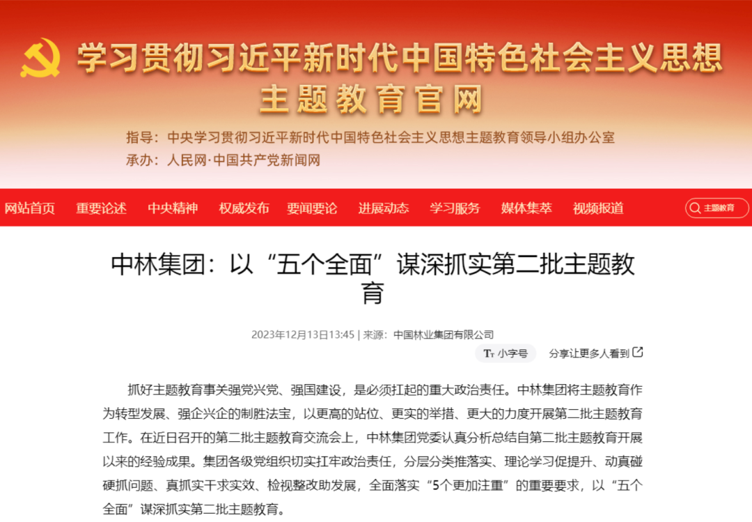 近日,中央主题教育官网、“学习强国”学习平台相继报道聚焦集团第二批主题教育开展情况、实际成效和好经验、好做法,为中林集团扎实开展主题教育营造了浓厚氛围。