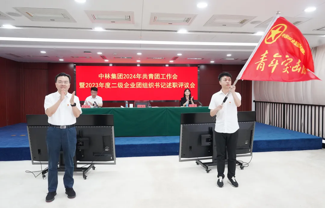 5月17日,中林集团召开2024年共青团工作会暨2023年度二级企业团组织书记述职评议会,集中学习习近平总书记五四青年节对全国广大青年寄语精神以及中央企业团工委有关会议精神,集团党委副书记、董事张炳南出席会议并讲话。会上发布了中林集团国储林青年突击队最新形象宣传片《使命》,并为先进集体和团队颁发奖牌和授旗。