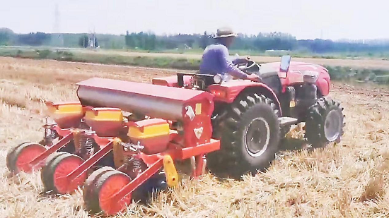 “春争日,夏争时。”小麦收获后,农田失墒严重,山东中林东平湖发展有限公司“四位一体”生态循环农业基地科学应对不利因素,趁墒抢播夏玉米,力争在6月底前完成1000亩地播种。