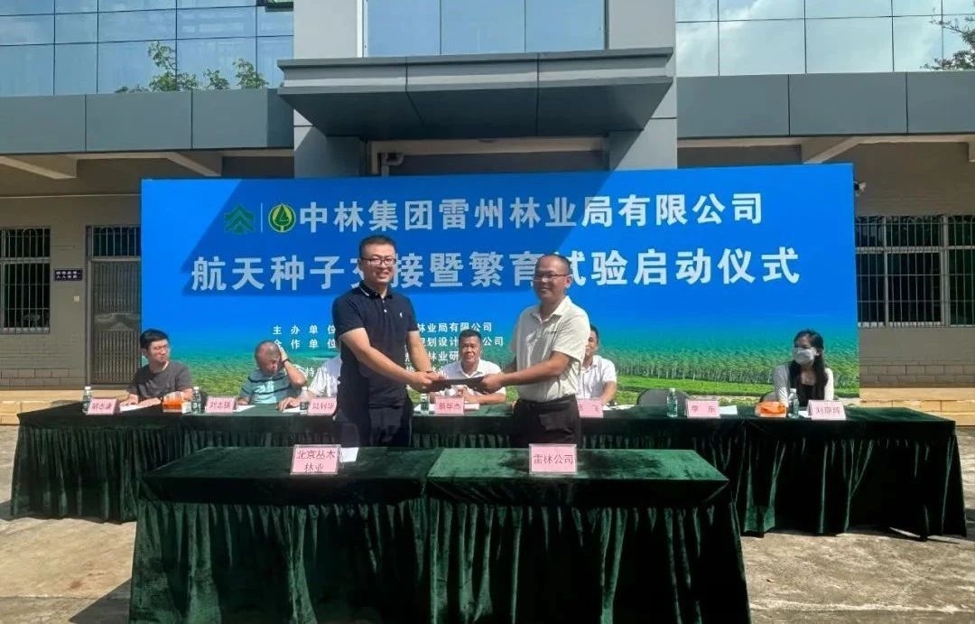 近日,中林集团所属雷林公司与中国林科院热带林业研究所、北京丛木林业规划设计有限公司合作选送的神州十六号飞船搭载种子已顺利返回,为切实做好航天种子交接及后续繁育试验工作,雷林公司在林业科学研究分公司举行航天种子交接仪式,首次开启桉树航天种子在公司的繁育试验之路。