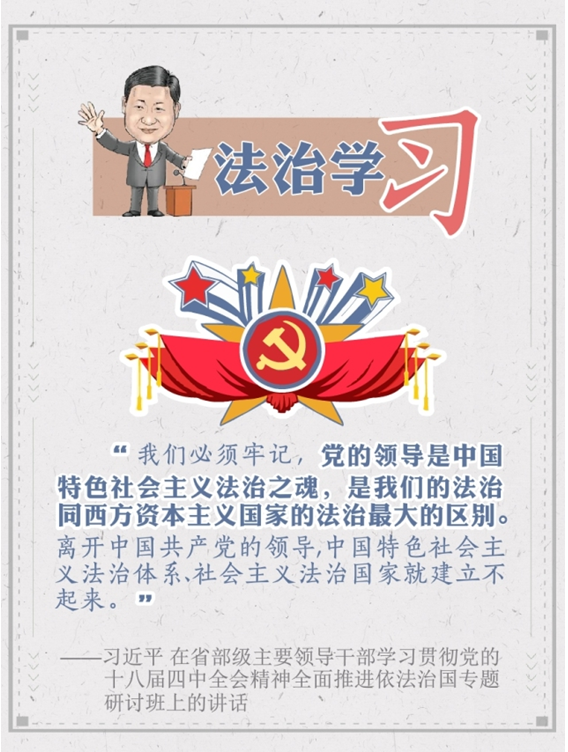 其中习近平总书记首先强调的、讲得最多的,是坚持中国共产党的领导。党的领导是中国特色社会主义最本质的特征,是社会主义法治最根本的保证,是我们的法治同西方资本主义国家的法治最大的区别,也是为我们的法治实践所证明了的重大制度优势。