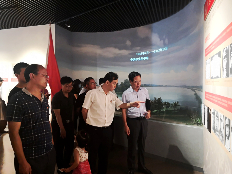首先参观了“中共中央华中局第一次扩大会议旧址”。阜宁县是著名的革命老区,红色土地。中共中央华中局历史陈列展分为“历史担当,中原局进盐城”、“中流砥柱,华中局力挽狂澜”、“继往开来,第一次扩大会议”、“烽火淬砺,从反攻走向胜利”四个部分,系统地再现了华中局的历史与辉煌,并以此凸显中国共产党领导在敌后抗战中的特殊作用和伟大贡献。