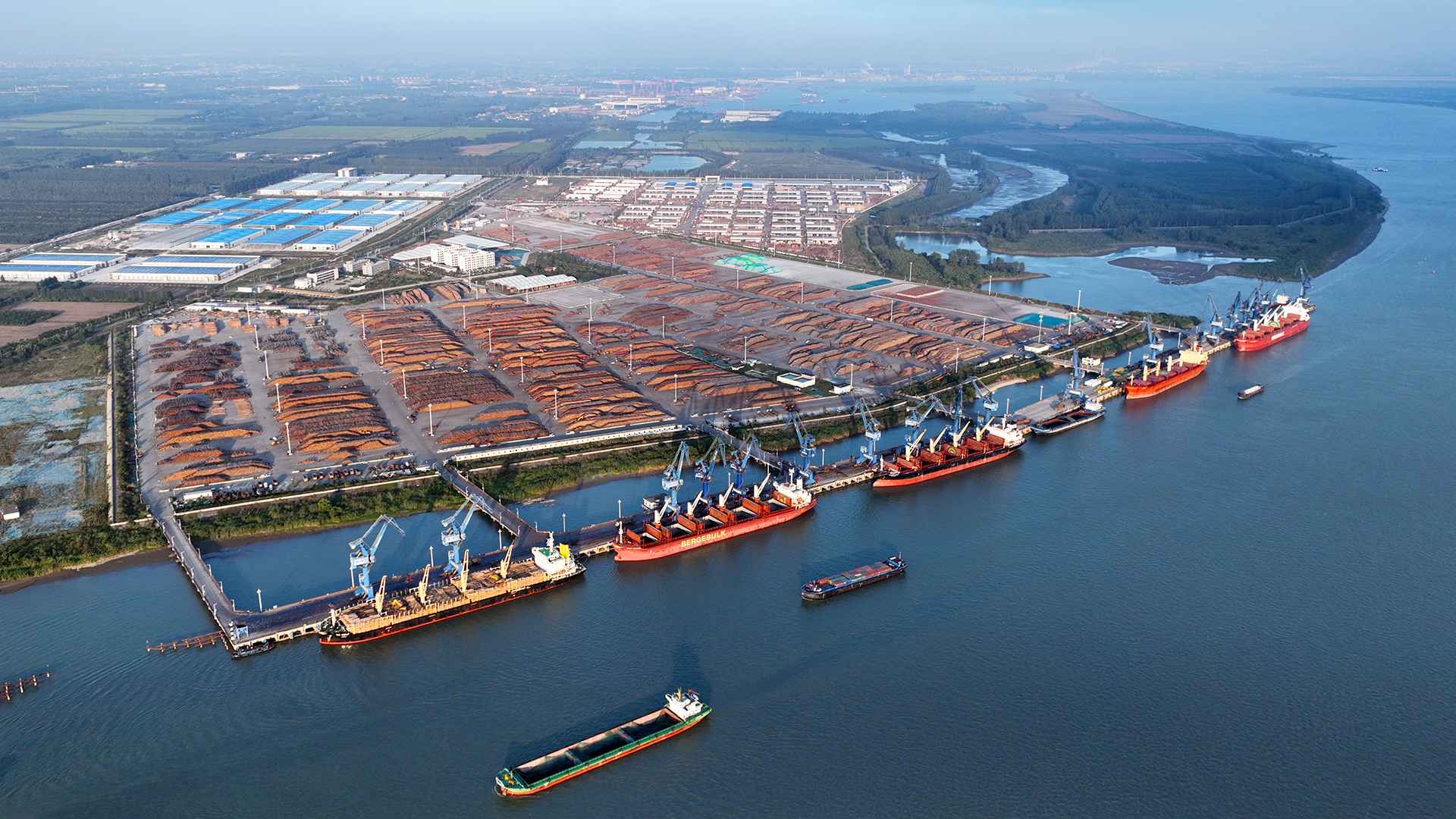 中林集团打造绿色智慧港口园区,大力发展“前港-中园-后产”模式,构建全国木材行业供应链管理体系,打造林业产业综合性服务平台,经营网络已遍布全国大部分省(区),到货港口或口岸达20多个。中林新民洲港是长江流域国内木材进口综合服务能力第一大港、国家级木材战略储备基地、国际木业交易中心;中林如皋港是长江下游一次性堆存能力最大、品种规格最齐、加工服务功能最全、吸纳能力最强的港口物流基地。中林集团目前已培育了一大批木材产业精深加工为重点的产业集群,为我国林业产业转型升级注入了强劲动力。