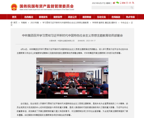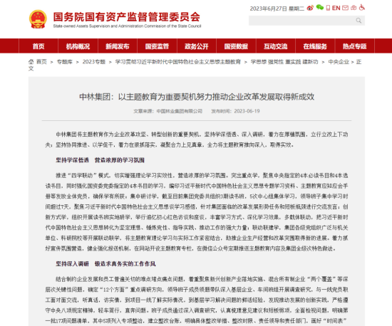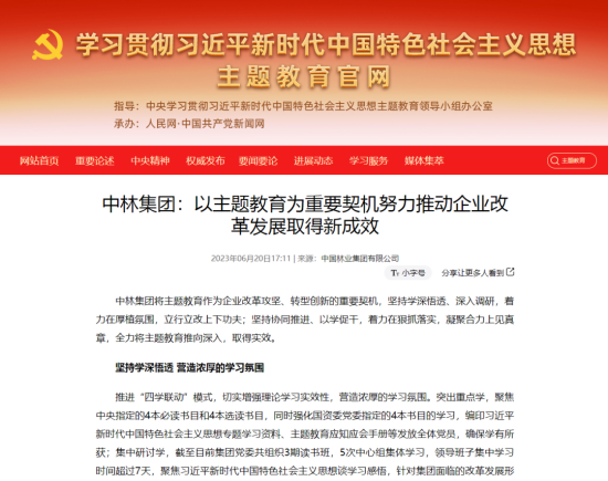 赞!中央主题教育官网、国资委官网、国资委主题教育简报聚焦中林集团主题教育成效