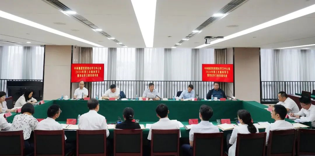 5月24日,中林集团党委举办理论学习中心组2024年第三次集体学习暨党纪学习教育读书班。集团公司党委书记、董事长、总经理单忠立出席会议并作开班动员讲话。集团党委委员、副总经理李留彬、梁中基,党委委员、总会计师王迎财,党委委员、纪委书记王云飞参加学习,国务院国资委党委党纪学习教育工作专班有关同志莅临指导。
