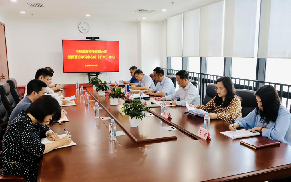 中林森旅召开党委理论学习中心组(扩大)学习会,专题学习党的二十届三中全会精神。会议强调,要以“第一议题”、中心组学习、干部培训、党员教育、“三会一课”、主题党日等活动为载体,全面系统学习全会精神,做到学思用贯通、知信行统一。要坚持问题导向和目标导向相结合,系统谋划、统筹兼顾,围绕集团公司“六个全面”战略部署,一体推进公司年度重点工作任务。要深化党纪学习教育,继续深化理论学习、强化问题整改、落实成果转化,制度化、常态化巩固学习教育成果,打造风清气正、干事创业的良好政治生态,为公司改革发展注入强大动力。