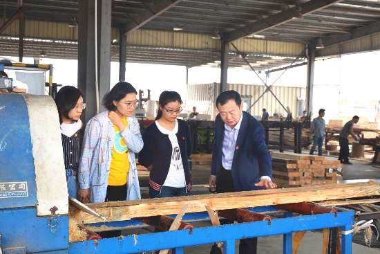 5月16日下午,大家在新民洲港务有限公司党支部书记、副总经理马先伟,常务副总经理钱兵,新民洲港务有限公司和镇江国林生态产业城有限公司副总经理程实的带领下实地查看了新民洲港4号泊位、木材堆场、国林产业城木材初加工区、1098亩木业制造区项目;在木材堆场详细了解木材进口流程、堆存标准等内容;在国林产业城木材初加工区交流了木材加工方法、参观了木材生产流程。现场气氛热烈,互动频繁,进一步丰富了大家的实践认识。