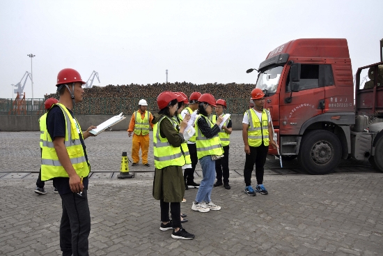 5月17日,团员青年认真学习了在木材现场安全注意事项和检验码单的记录方法,对货物到港、卸船、检尺、通关、堆场存放、销售出库等贸易流程进行了交流。下午,在木材堆场体验了木材装车过程,实际进行码单登记,跟踪了解木材出货现场环节。